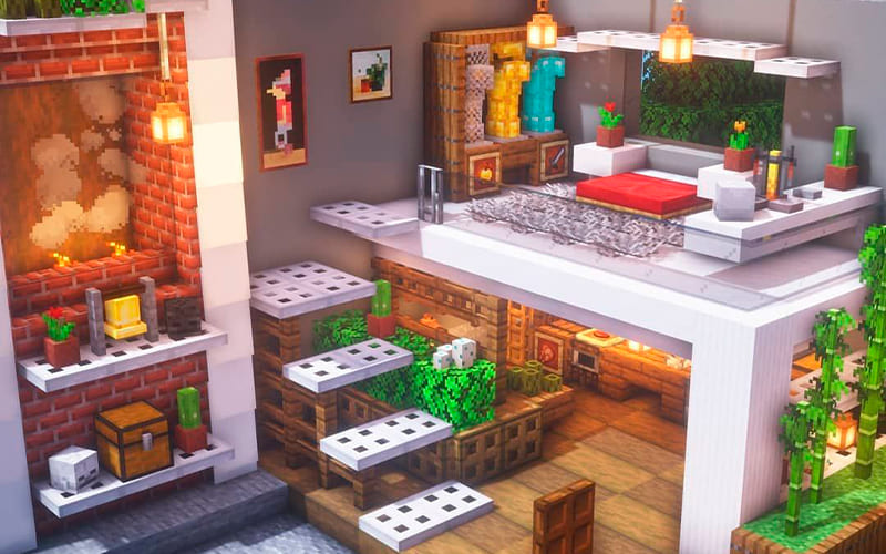 Importancia de los interiores: No te concentres solo en la fachada; dedica tiempo al diseño interior. Usa diferentes paredes, divide el espacio en habitaciones más pequeñas, añade muebles y elementos que generen inmersión.