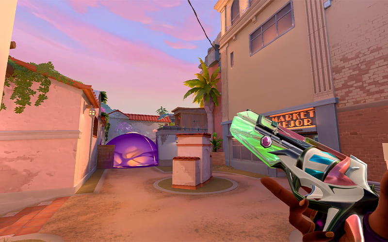 Estrategias de acecho y rata en Sunset Map: Acechar no es una estrategia recomendable en Valorant, ya que tu equipo se ve superado en número mientras tú buscas palomitas y Coca-Cola para llegar al lugar y vigilar sus tumbas. Sin embargo, en Sunset, las probabilidades siempre están de tu lado. Como la ruta de rotación es más corta y hay muchos rincones donde esconderse, siempre puedes elegir una Víbora o un Cibercamuflaje y lanzarte a la aventura. Asegúrate de no abusar del acecho. Reduce las rotaciones enemigas y adopta la estrategia de la rata.