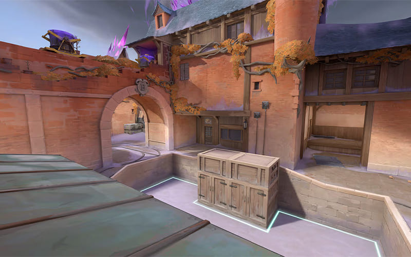 Uso de las rejillas de ventilación y los ángulos irregulares: Las cajas del mapa Atardecer no tienen la altura habitual de Valorant. Esto te permite saltar sobre varias cajas del mapa para obtener mayor altura. Sorprende a tus enemigos con los peculiares vistazos en ángulo.También puedes usar los respiraderos y las esquinas como palanca para lanzar destellos y granadas, o incluso para asomarse a la pared con el Sabio. Este truco puede sorprender a los enemigos, ya que no esperarán encontrar esos lugares. Asegúrate de no usar los mismos trucos una y otra vez en la misma partida.