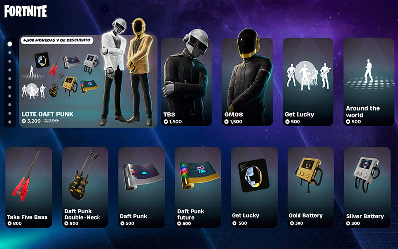 De acuerdo a la información que se presentaba, la cual medios como IGN recuperaron, estaba que en la tienda habría disponibles 4 nuevas skins temáticas del grupo, las cuales incluían accesorios y gestos. Además, los instrumentos y la pirámide de Daft Punk llegarían a LEGO Fortnite, esto junto con una pista inspirada en una de sus icónicas giras, música para usar en el Dream Chamber Studios y actividades como el Daft Club y la Robot Rock Arena.