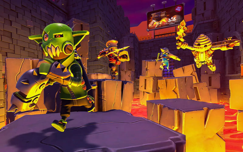 “La idea principal es empujar a la gente por el precipicio”, comentó entre risas uno de sus creadores, Johnny Hopper. Y esta frase del también fundador del estudio Glowmade resume bastante bien el espíritu de King of Meat. Es un juego centrado en el caos, donde hasta cuatro jugadores compiten y cooperan en un programa de televisión ambientado en el mundo ficticio de Loregok. Lo que tenemos que hacer es atravesar mazmorras llenas de enemigos, sobrevivir a trampas ridículas y superar desafíos cooperativos mientras intentamos sobrevivir y sabotear a nuestros amigos para ser los vencedores. “Queríamos hacer un juego para jugar entre amigos. Es gracioso, es tonto, pero con mecánicas bien aceitadas detrás. Te reís, te empujás, pero también tenés que llegar al final del nivel con tu equipo”, explicó Mike Green, otro de sus creadores.