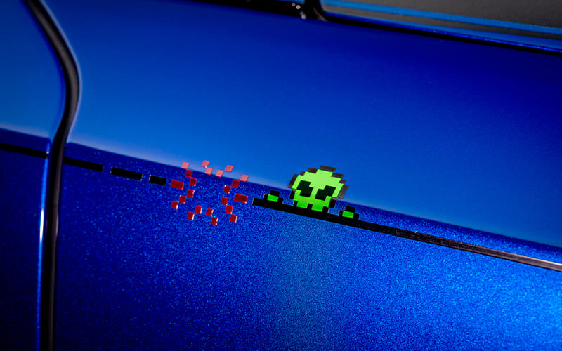 Esta creación reinventa la estética de 8 bits de los videojuegos clásicos mediante características Bespoke increíblemente inmersivas. Sus diseñadores colocaron cada detalle de tal manera que descubrir cada elemento, desde lo audaz, expansivo y lo oculto hasta ser encontrado, se convierte en un juego en sí mismo. Externamente se presenta con un llamativo acabado bicolor: la carrocería principal en Azul Salamanca y la superior en Cristal brillante sobre Negro Diamante, un tema que evoca la estética supermetálica y luminosa de las máquinas de videojuegos clásicas.